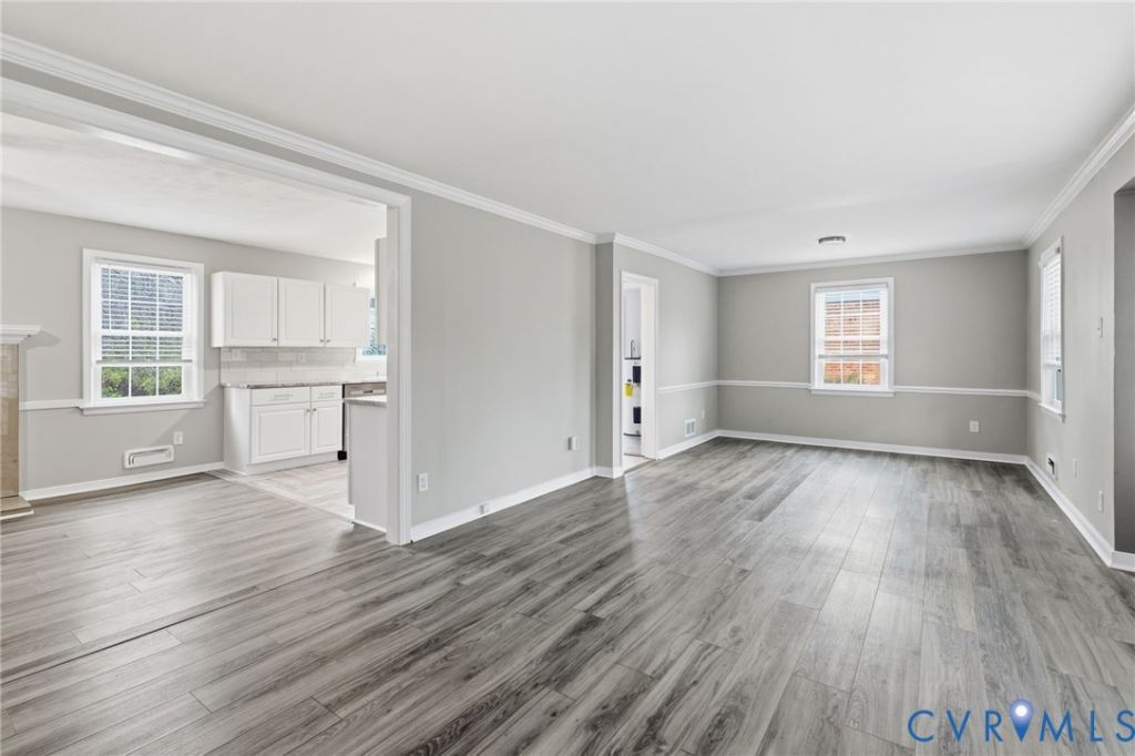 Welcome home to this charming brick Ranch on a dead-end street, offering comfortable one-level living with stylish updates throughout and privacy galore. Step inside to a large family room featuring new LVP flooring and new crown molding, flowing seamlessly into the dining area accented with chair rail, perfect for everyday living and entertaining. The newly renovated kitchen impresses with brand new granite countertops, tile backsplash, new modern cabinetry, farmhouse sink, stainless steel appliances, and tile flooring, creating a bright and functional culinary space. Just beyond the kitchen, an additional living area provides a cozy retreat with a wood-burning fireplace and ceiling fan. Around the corner, you'll find a convenient laundry room with direct outdoor access, adding to the home's practicality. The home features three spacious bedrooms, all with ceiling fans, fresh paint, LVP flooring, and oversized closets. The primary bedroom includes an attached en suite half bath, while the full hall bath has been updated with a modern vanity, contemporary tile flooring, and a tub/shower combination. Storage is abundant with a pull-down attic and a detached storage shed. Step outside to enjoy the expansive outdoor living areas, including a large deck overlooking a sprawling backyard that backs up to Tuckahoe Creek for unmatched privacy. A concrete patio provides even more space for outdoor entertaining. This well-maintained ranch blends comfort, functionality, and outdoor enjoyment, ready for its next owner to call it home!