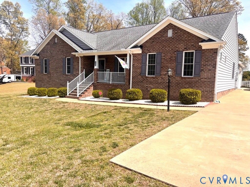 Welcome to this meticulously maintained home located in highly sought-after Hanover County on 1+ acres. Don't miss this incredible opportunity to own a four-bedroom, three full-bath, fully ADA-accessible brick rancher that perfectly blends comfort, privacy, & functionality. This home offers the ideal setting for peaceful living while still being close to everything you need. As you arrive, you'll appreciate the oversized concrete driveway that wraps around to the back, leading to a spacious patio perfect for outdoor entertaining. Step inside to a beautiful, modern open-concept floor plan featuring a welcoming sitting room & a stunning upgraded kitchen complete w/ granite countertops, custom cabinetry, stainless steel appliances, & a walk-in pantry. The kitchen flows seamlessly into the eat-in dining area & living room, while the extended bar provides seating for 6-8, making this home an entertainer's dream. The private primary suite is thoughtfully tucked away in its own wing of the home and features clerestory windows that fill the space with natural light. The luxurious en-suite bathroom offers an oversized jetted soaking tub, a large tiled walk-in shower with built-in seating and shelving, dual vanities, a water closet, & a linen closet that leads into a spacious WIC. On the opposite side of the home, you'll find three additional generously sized bedrooms with ample closet space, along with two full bathrooms perfect for family or guests. The laundry room is equipped with wall cabinetry & a hanging rack for added convenience. Accessibility is a standout feature, w/ wheelchair-accessible ramps leading into both the garage and back deck. This home has a full house generator, tankless water heater, & encapsulated crawl space. The interior has been freshly painted, making this home truly move-in ready. Enjoy the convenience of nearby grocery stores, local produce stands, & quick access to I295, allowing for an easy commute to surrounding areas. This home truly has it all space, accessibility, location, and style.